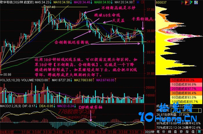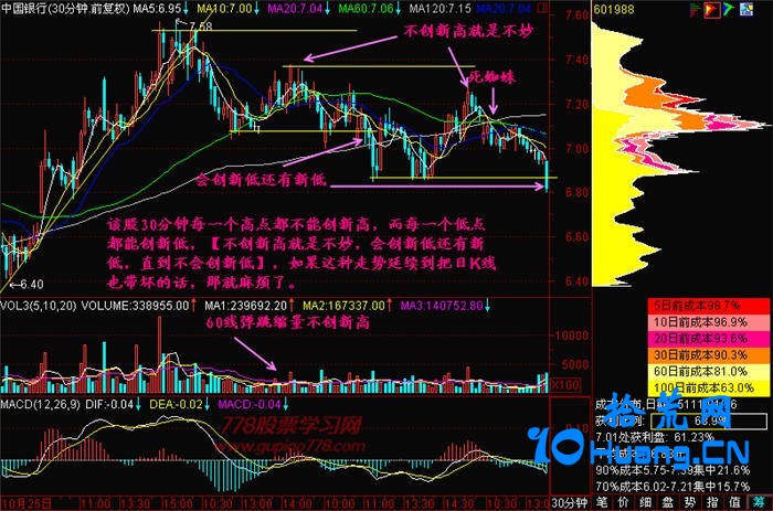 对于30分钟走势要多加留意,结合指数情况、个股情况综合分析,如果发现不妙了,还是先撤退为好,免得到时候日K线跌至2-3区间才醒悟过来的话,就稍晚了点。