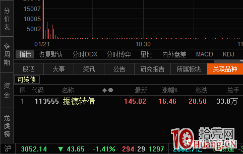 在软件分时界面,左下角【股吧,大事,资讯】一栏能直接看到关联品种显示。有的话就有,没有就是没有。