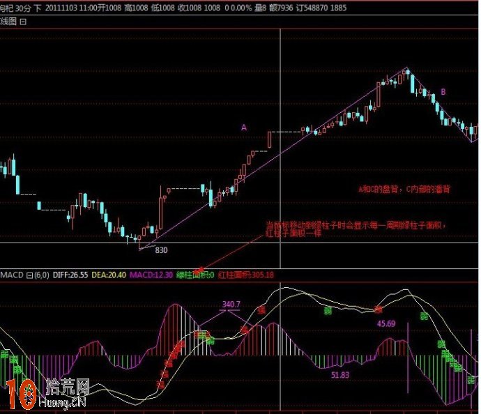 红柱面积:IF(MACD>0,SUM(MACD,BARSLAST(MACD<0)),0),LINETHICK0,Colorred;