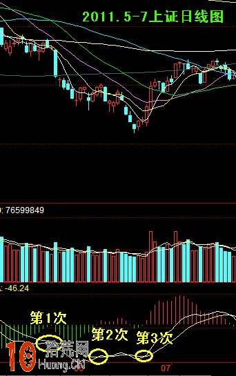 我近来说大盘现在就是震荡筑底,就是说是一个震荡筑底过程。什么时候才是见底呢?这一点从MACD指标可以看出来。一句话:MACD第三次向上金叉时就是见底的时候。但是要注意:并非所有的见底都需要MACD第三次低位金叉,只是说,MACD第三次低位金叉是见底的一个比较可靠的信号。这种现象以近一年来的事实为例可见。