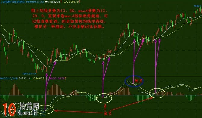 总之MACD指标说的很明白,是以均线指标MA为基础,经过上面的数学模型改造出来的,上一张图比较一下: