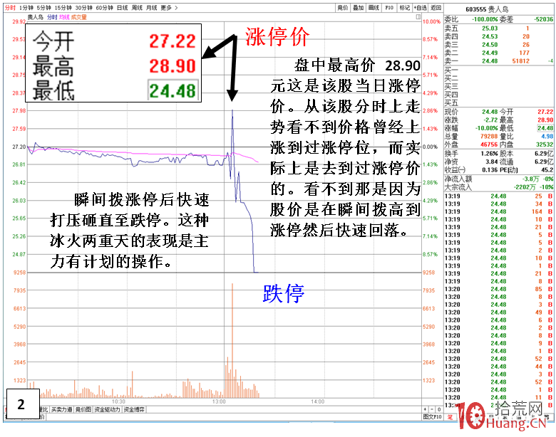 主力高控盘个股在庄家出货弃庄状态下风险巨大非常危险。因为该股在主力出货派发过程中被压着往下走。小部分庄股在庄家出货前会出现一个小动作,那就是操盘手少中的老鼠仓先行出逃,这种情况出现在高位庄家出货前最多。盘中操盘手先将手上获利丰厚的老鼠仓筹码在涨停价挂出,然后用大买单瞬间将股价拨至涨停将事先挂出的老鼠仓筹码接走,然后展开大规模打压出货。