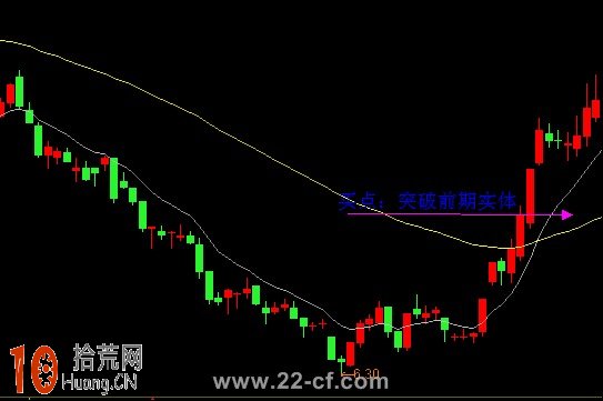 3:10均线和60均线慢慢走向粘合,特别是在“脚趾头”处,K线一定要夹杂在10均线和60均线中间憋屈。