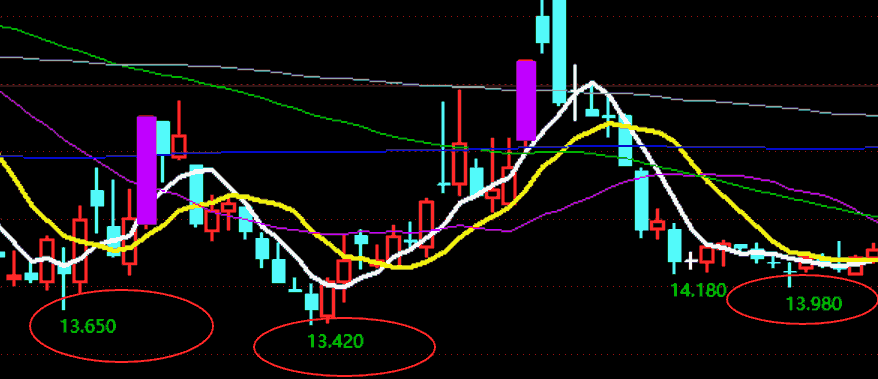 N:=5;{前后各N个周期的最小值,N值可自定} KDL:=FILTER(BACKSET(FILTER(LLV(L,N*2+1)=REF(L,N),N),N+1),N); DRAWNUMBER(KDL,L*0.995,L)COLORGREEN;