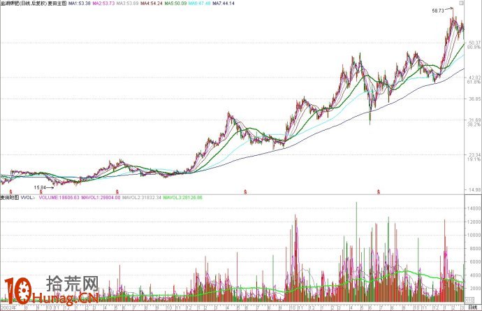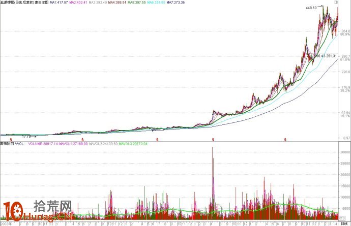 盐湖钾肥(000792)的股价在2003年3月至2005年11月的33个月的时间里,形成了明显的上升趋势,并且在此期间,股价下方的成交量也异常地放大,形成明显的“成交量带”,至该股于洗盘后形成“多线黏合”时,我们不难判断出前期所形成的上升趋势及巨大的“成交量带”是由主力的强烈吸纳行为与积极的操作策略所造成的,后来该股涨幅巨大、涨势持久,成为一只名副其实的强势大牛股。