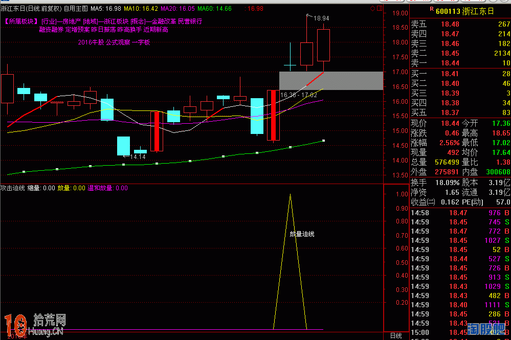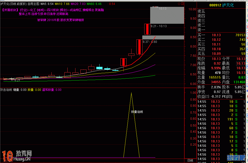 2.竞价低开。快速翻红,上冲黄线时,回落不深,继续上冲。