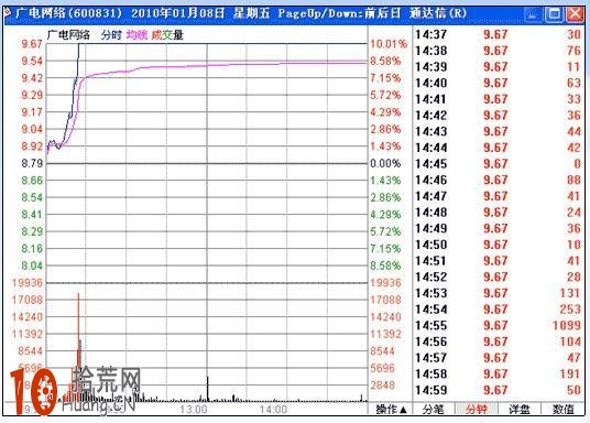 广电网络在2010年1月8日早盘半小时四波封死涨停,股价突破箱体,主力做多决心异常坚决,临盘可在最后一笔封死涨停前跟进,或在涨停后排队买入。拾荒网。