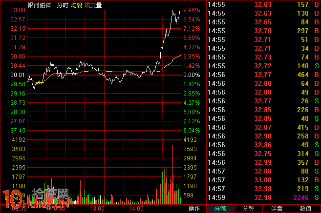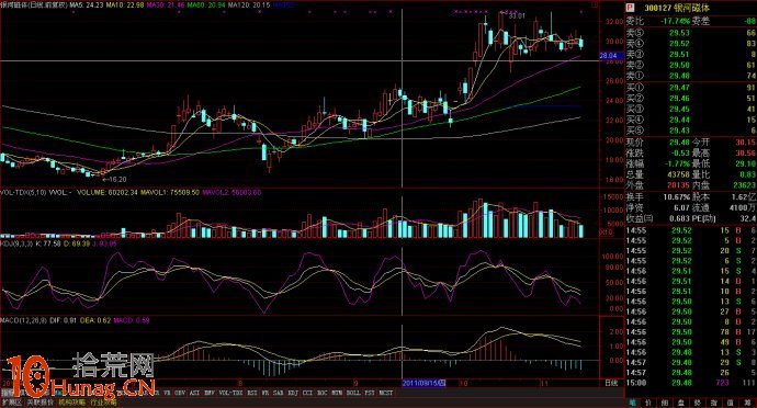 银河磁体:第四天涨停分时图:可以发现主力在午后突袭大幅拉升的形式涨停。具有时间短,拉升幅度大,逆势等特点。(细节:涨停被打开,回调幅度大,收盘再次收涨停,涨停不坚决)。