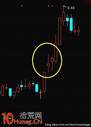 回马枪,两骑交锋,一骑佯败,另一骑追,败者回头刺,追者淬不及防;在股市上,主力洗盘,涨停后拉出长上影,让追着纷纷出局,然后再度猛拉,让出局者猝不及防。