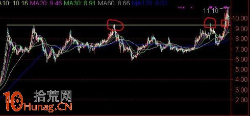 图片里画圈的地方都是历史高点附近,有些是刚到这个位置开始转身下跌,有些还是突破几天后再跌回原有区间,而在不知道之后走势时,很多投资者都会选择突破时的买入。而事实证明,90%以上都是假突破,因此套牢或割肉离场就是大多数投资者的命运,包括我。