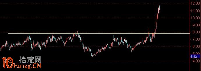 三、突破后不回抽的极少(横店东磁没有回抽),大多数牛股不管是一个月甚至随后两三个月都有一次回抽突破颈线位置的走势,且回抽时有可能跌破前期历史高点再次制造突破失败的K线,但均是短短一两天股价就再次走高。