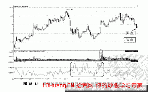 图18-13为襄阳轴承(000678) 2009年4月27日至12月23日期间走势图,此股在上升途中的一波深幅回调之后的盘整震荡走势中出现了每笔均量大幅攀升的形态,很明显,此股出现这种每笔均量大幅攀升形态的时间与位置都与前面几个例子存在着明显的不同,但相对低位区的每笔均量大幅攀升形态肯定不可能是主力的出货操作,而且在每笔均量大幅攀升时,我们可以看到,个股是呈上涨形态的,这说明,有主力在进行积极的加仓操作。
