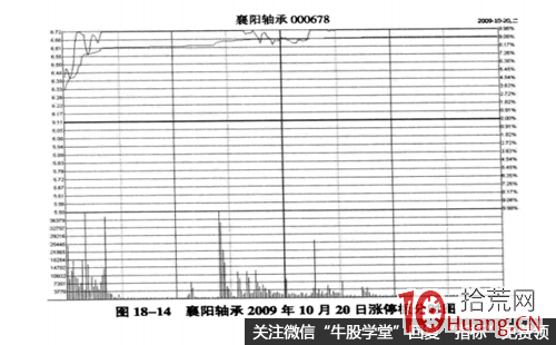 图18-14为此股2009年10月20日涨停板分时图,图18-5为此股这一涨停板出现后的走势图。