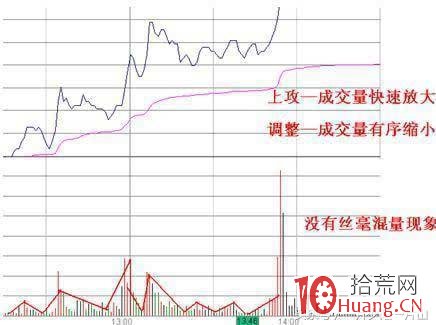 2、成交量要有“静如处子,动如脱兔”的性质。就算没有出现推升动作时,成交量很温和,尤其是在横盘过程中,成交量呈现阶梯型缩量,缩量非常有序而不凌乱。