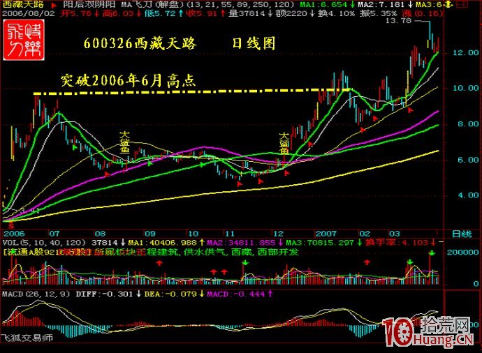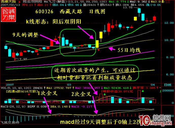 3月27日,国家增资3000亿元建设西藏的消息,对西藏板块无疑构成利好作用,这样对西藏天路(600326 )来说,就形成了共振效应。因此,开盘不久西藏天路便封冲至涨停,并带领整个西藏板块大涨,MACD的时间周期和基本面的利好消息如此巧合,实在令人叹为观止。