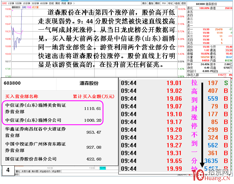 翻看历史上走出三板五板后的龙头股妖股,分析他们的盘面表现。大都存在两种鲜明特征:一就是涨停分时盘中表现非常流畅,多在早盘一两波快速拉高封涨停。要不就是分时起落表现杂乱无章。有大资金作为主导力量干预时,股价表现大都表现较顺畅。由市场众多机构和散户参与交易的股价盘中表现反复分时走势杂乱。