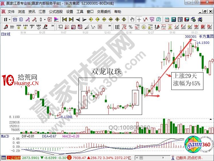 上面是长方集团在历史上的部分走势图,从图中我们可以看到,该股在底部形成了非常明显的两个涨停板,即图中方框所圈住的部分,在该模型形成之后,投资者可以在回调61.8%支撑位的时候进行买入,这样就不会错过上涨29天的45%的利润了。拾荒网,一个有价值的炒股知识网站。