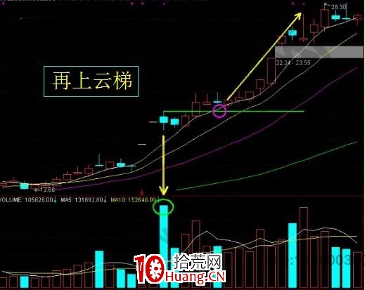 再上云梯模型有什么样的技术要点呢?它的相应的要点就是:该形态前面必须要有一字板所启动的行情,而且起码是有2个以上的一字板,一字板的末端形成了近期的最高量,有可能就是天量,当然对于阴阳是没有要求的。