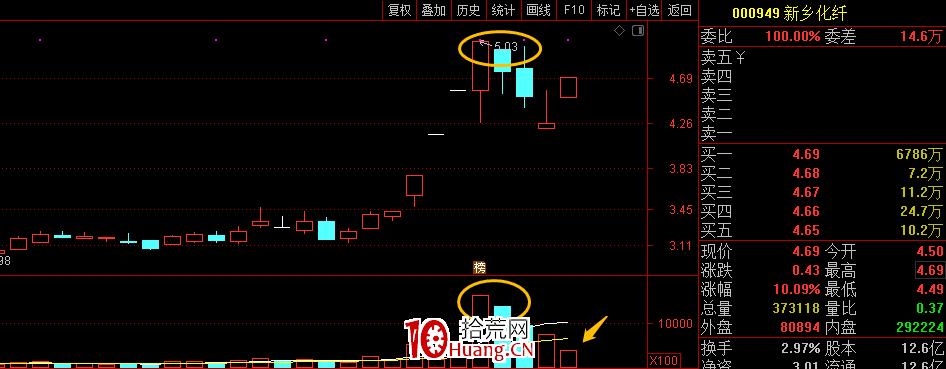 新乡化纤涨停时距离前高还有7%空间,前期被套的多数人的心态是,再等一等吧,明天再涨就会解套,明天涨停就赚钱了。(通常,短期回调15%左右,涨停后距离前高超5%,算是前高掩护板)