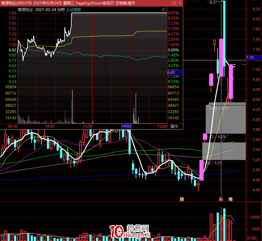 如,2月24日的章源钨业,还有今天的山东海化/金牛化工,涨停板都开过,也有些盘中换手非常充分后选择在尾盘 一次性涨停的,如2月24日的章源钨业。