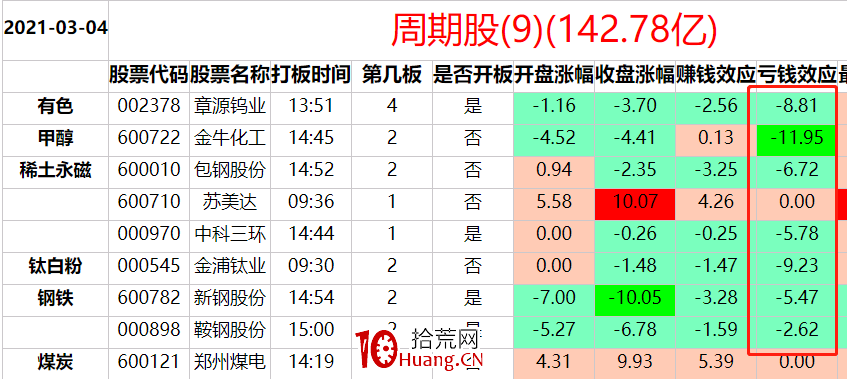 这里的周期股波动明显变大,前一天涨停潮,第二天指数大跌下,大多数都是高开低走的走势。