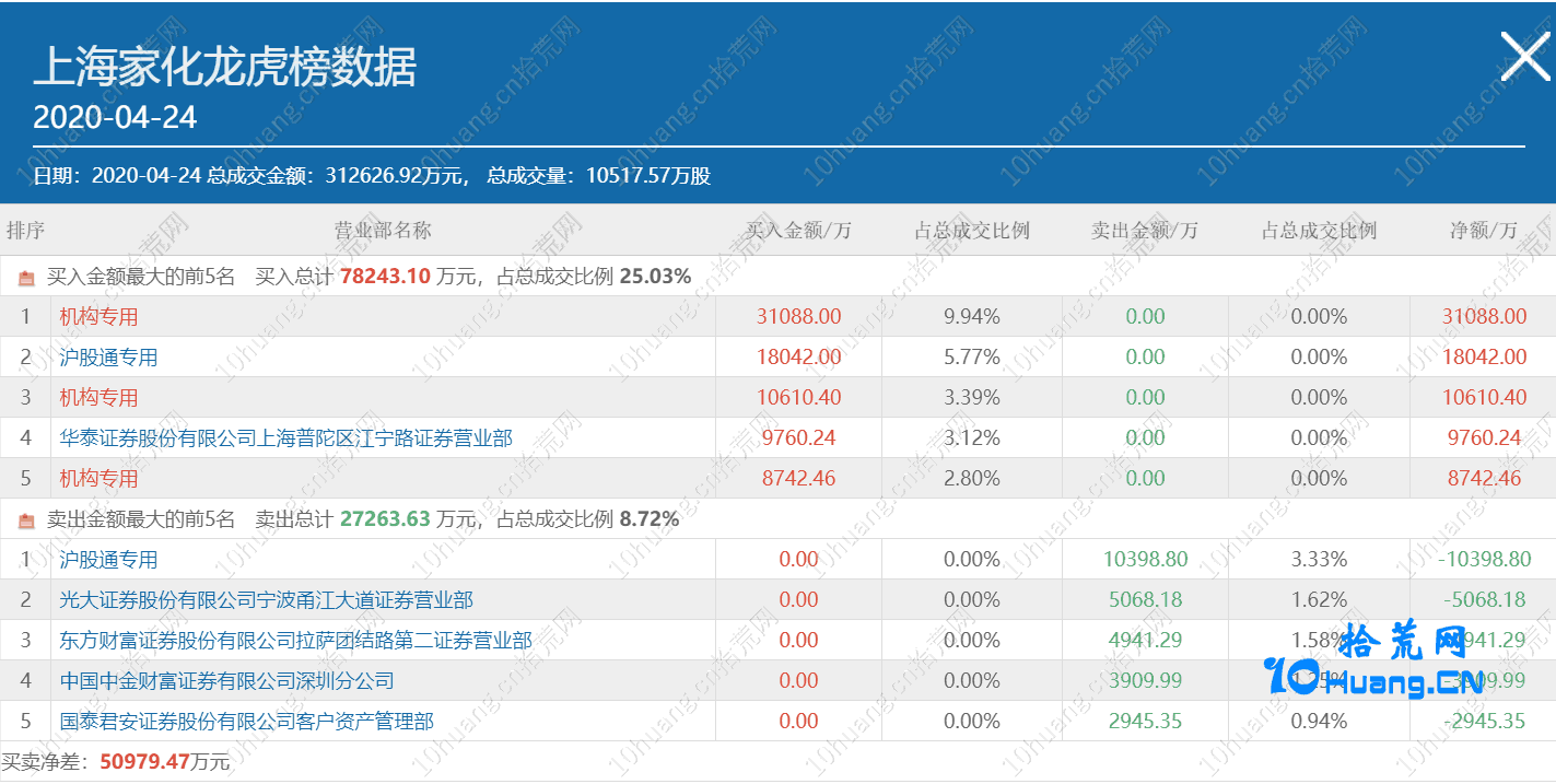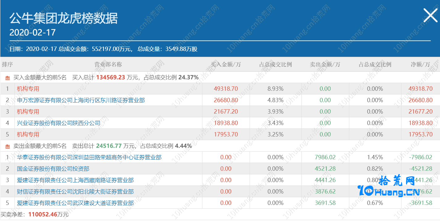 这是东方财富交易软件里面,机构当日买入的龙虎榜。