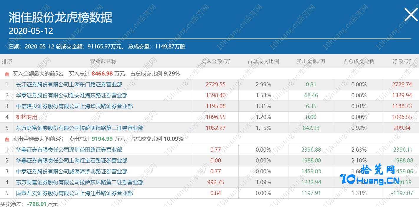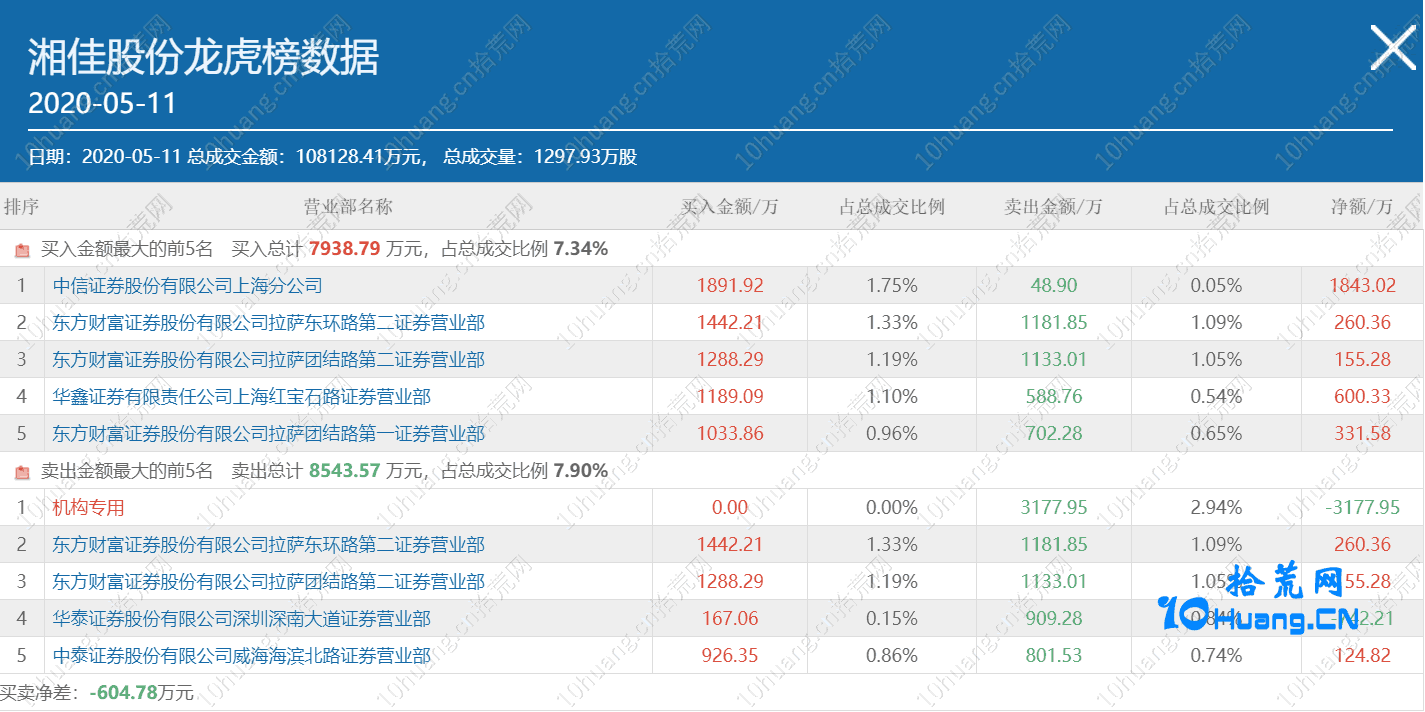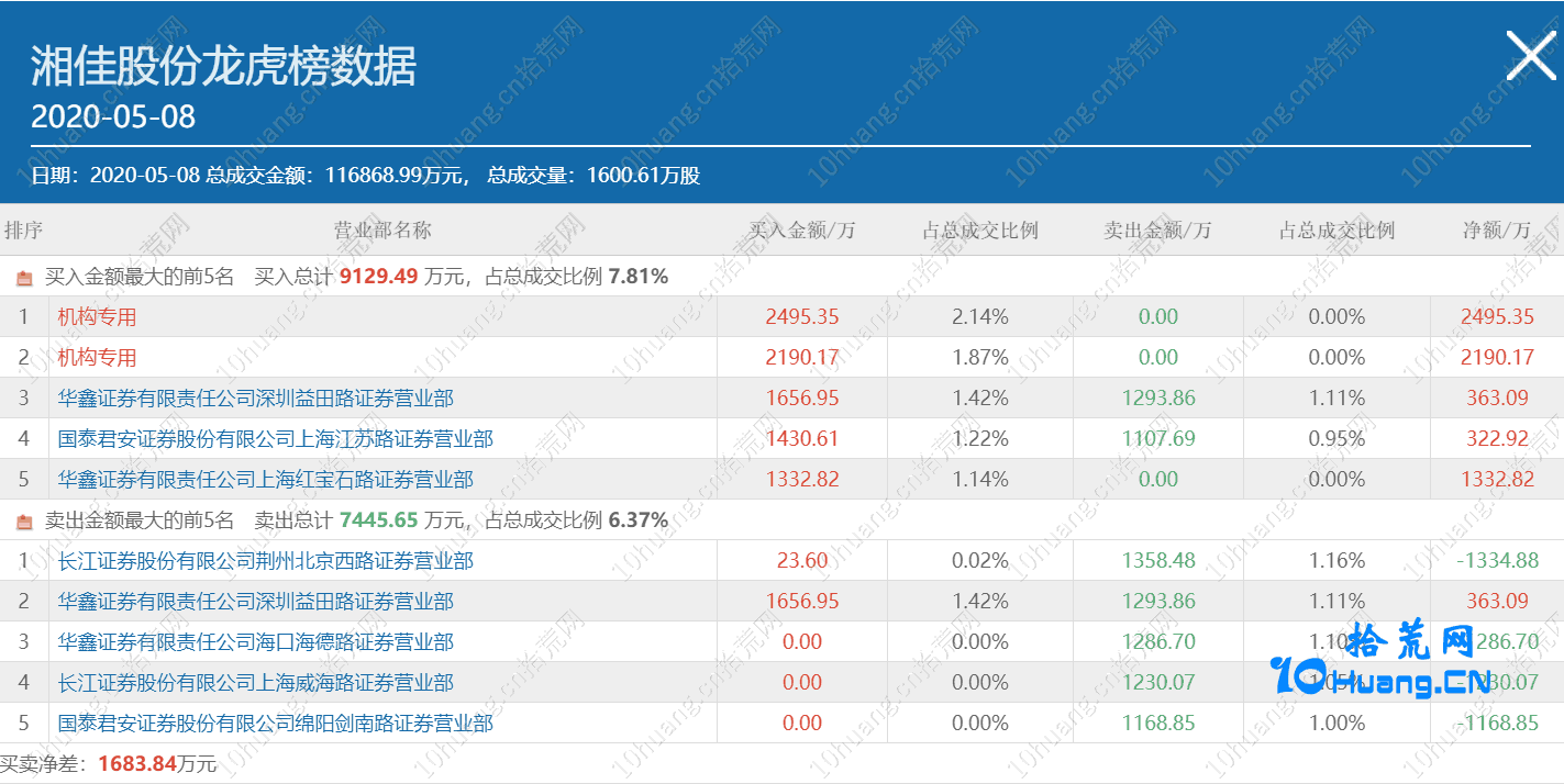 从龙虎榜上我们可以看到,湘佳股份在5月8号出现了机构的身影,