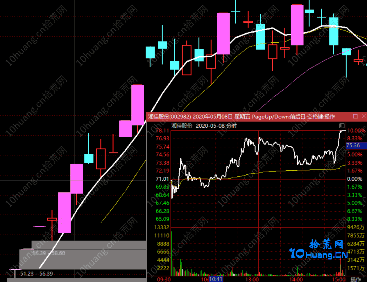 另外一个就是壹网壹创这支个股,这只个股的炒作相比卓盛微,有相同点也有不同点。这是来自拾荒网10Huang.CN,专注短线技术技巧进阶。相同点在于其在开盘后也是机构大举买入,就如图中第一个黄色方框一样,走了个波段行情。