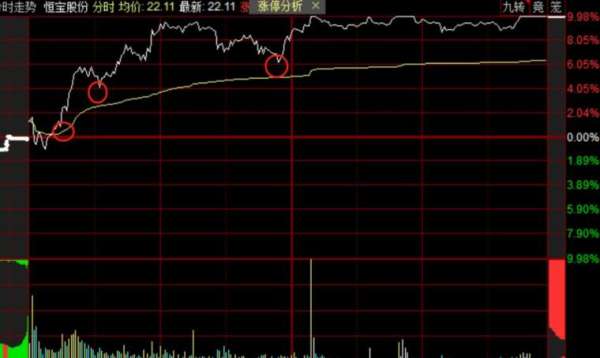 日内分时均线,是当日平均成交价位,强势的票,尤其是上行的票,除了日K的支撑外,在分时均线一般都会有强承接。弱势的票,会被分时均线压着打,说明资金到了均线价以卖出为主,强势的票,会被分时承接住,说明资金到了均线,就会有买力入场,去做低吸。