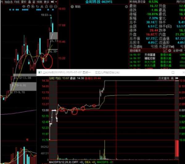 这个主要考验选手对于整个票的预判,然后进行的左侧预判。以最近选美的金时科技为例,当时金字辈在金安国纪带动下发酵,同时数字货币在7.7日发酵非常强,金一文化上板,整体的题材除了电力、外卖大战外,势能都在数字货币这边,这样思考下来,去选择一个后排的,日K调整好的,分时承接ok,卖压衰竭的票,去低吸,是最佳的选择。