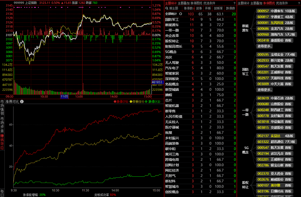 000957 | 中通客车 | 10.05% | 11.28 | 10:43 | 13:12 | 0 | 换手板 | 1.599亿 | 1.60亿 | 十板 | 10连板 | 5.17% | 无人驾驶,新能源车 | 15.55亿 | 山东 | 40.21% |